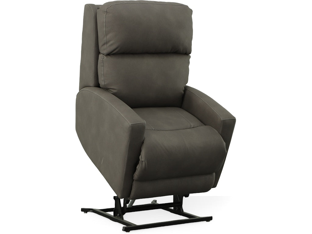 The 88446B Power Lift Chair combines comfort and innovative design with its power adjustable headrest and lumbar support, extended footrest, and Zero Gravity Recline. Upholstered in Polo Club Kohl fabric, this chair features a dark grey-brown color that is part of Stanton's Smart Fabric collection. This high-performance indoor furniture fabric is specifically engineered to repel both liquid and non-liquid stains, providing barrier protection through completely encapsulated performance fibers. This unique design ensures that spills do not permeate the fabric, safeguarding the inner cushions from soiling.