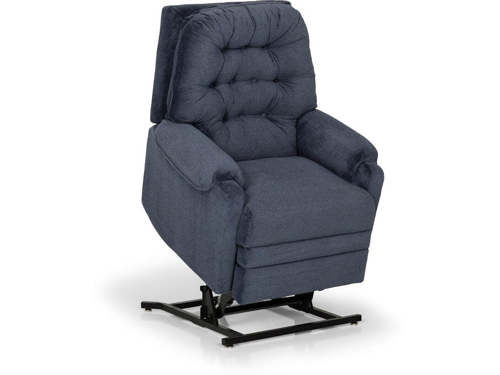 The 89346B Power Lift Chair seamlessly combines comfort and convenience with its power adjustable headrest and lumbar support, along with an extended footrest and the remarkable Zero Gravity recline feature. Upholstered in Domain Eclipse, a medium navy blue hue, this chair adds a sophisticated touch to any room.